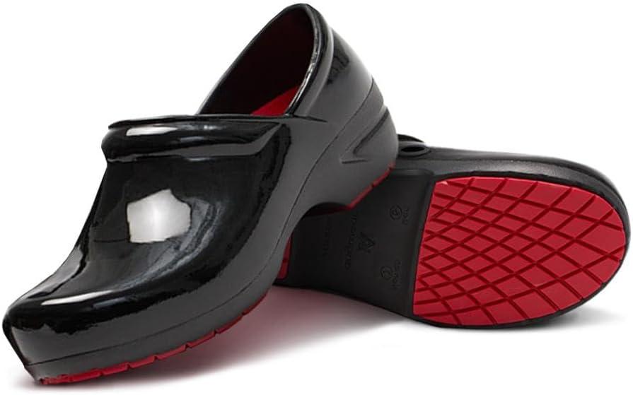 Anywear SR Angel Nursing Clogs - Non-Slip Work Shoes for Women & Men - Slip-Resistant Nursing Shoes - Cushioned Nurse Clogs(Black Patent Black)