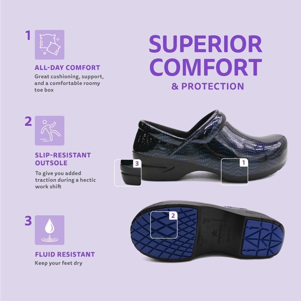 Anywear SR Angel Nursing Clogs – Non-Slip Work Shoes for Women & Men – Slip-Resistant Nursing Shoes – Cushioned Nurse Clogs(Ecliptic)