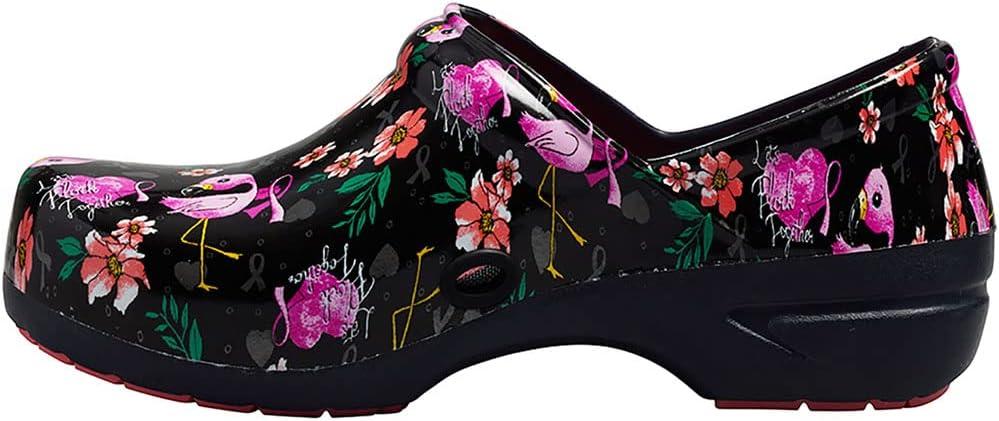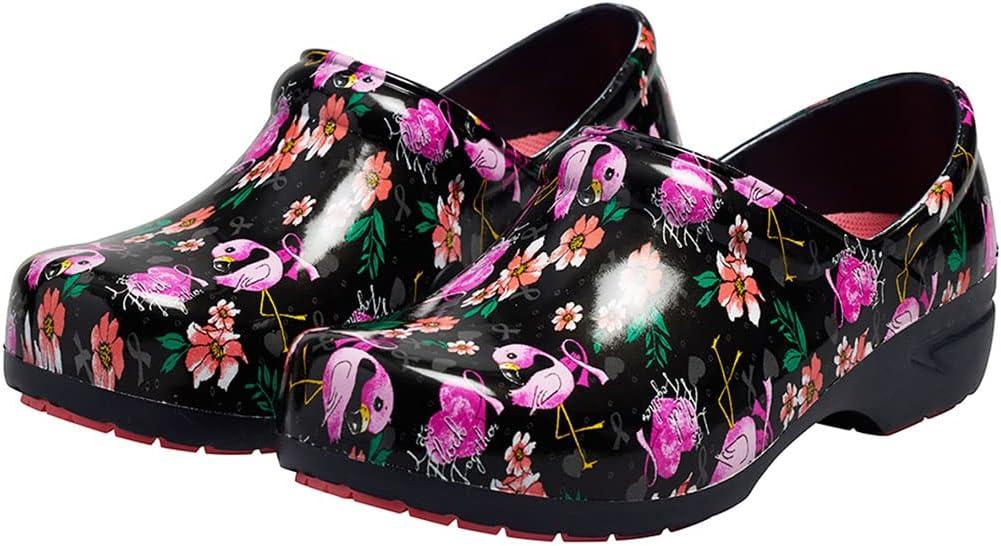 Anywear SR Angel Nursing Clogs - Non-Slip Work Shoes for Women & Men - Slip-Resistant Nursing Shoes - Cushioned Nurse Clogs(Floral Flamingo)