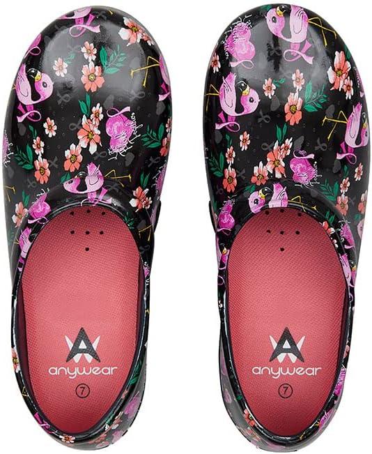Anywear SR Angel Nursing Clogs – Non-Slip Work Shoes for Women & Men – Slip-Resistant Nursing Shoes – Cushioned Nurse Clogs(Floral Flamingo)