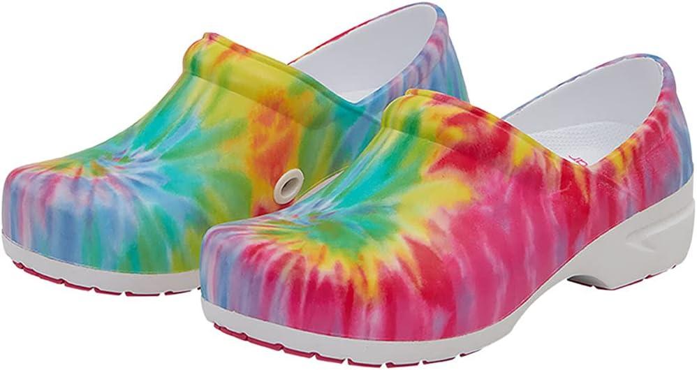 Anywear SR Angel Nursing Clogs - Non-Slip Work Shoes for Women & Men - Slip-Resistant Nursing Shoes - Cushioned Nurse Clogs(Vidid Tie-dye)