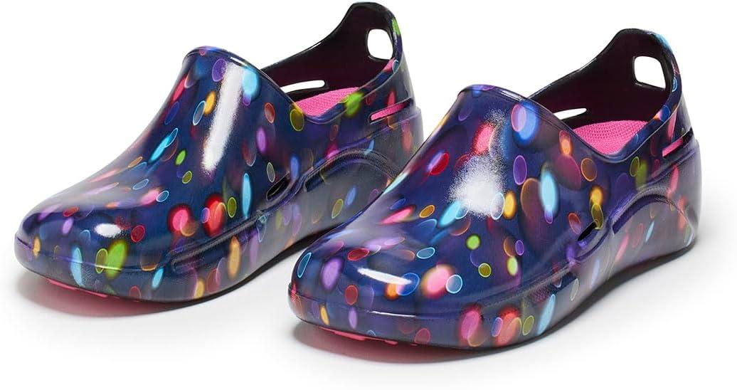 Anywear Streak Work Clogs - Slip-Resistant Clogs for Women & Men - Water Resistant Nurse Shoes - Easy Clean Kitchen Shoes(Disco Dots)
