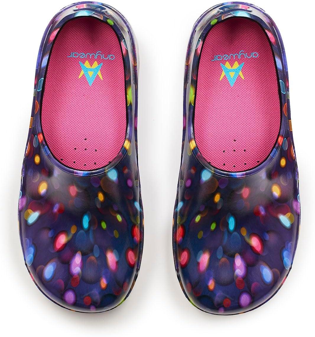 Anywear Streak Work Clogs – Slip-Resistant Clogs for Women & Men – Water Resistant Nurse Shoes – Easy Clean Kitchen Shoes(Disco Dots)