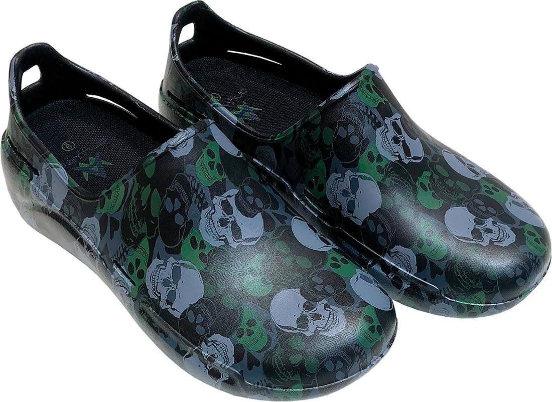 Anywear Streak Work Clogs – Slip-Resistant Clogs for Women & Men – Water Resistant Nurse Shoes – Easy Clean Kitchen Shoes(Skulls)