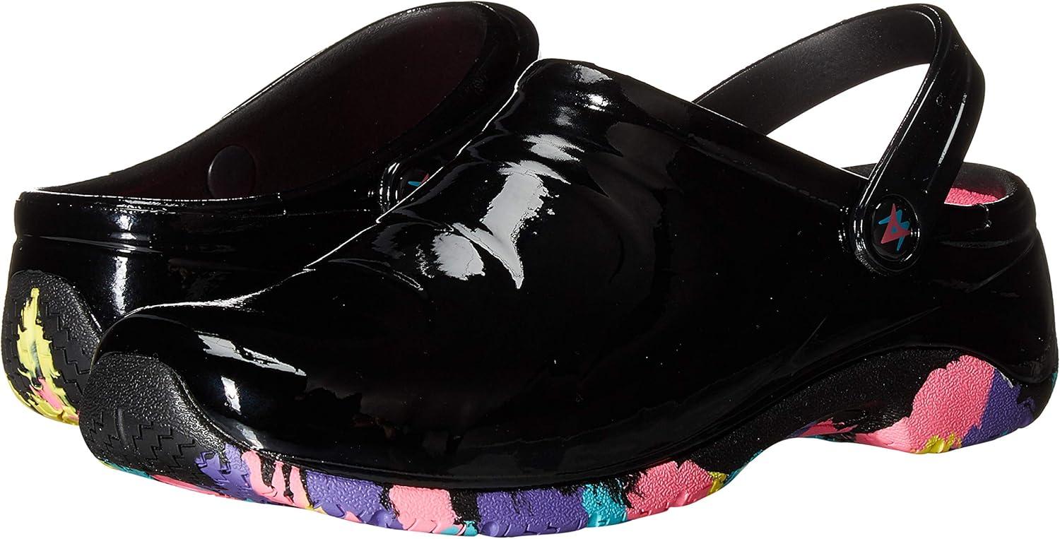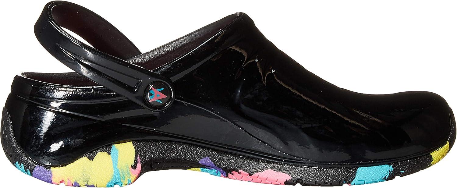 Anywear Zone Clogs - EVA-Cushioned Non Slip Work Shoes - Breathable Nursing Shoes - Swivel Back Strap Clogs for Men & Women(Sole Focus Black Patent)