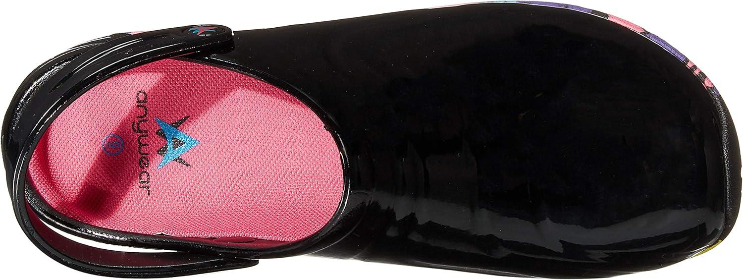 Anywear Zone Clogs – EVA-Cushioned Non Slip Work Shoes – Breathable Nursing Shoes – Swivel Back Strap Clogs for Men & Women(Sole Focus Black Patent)