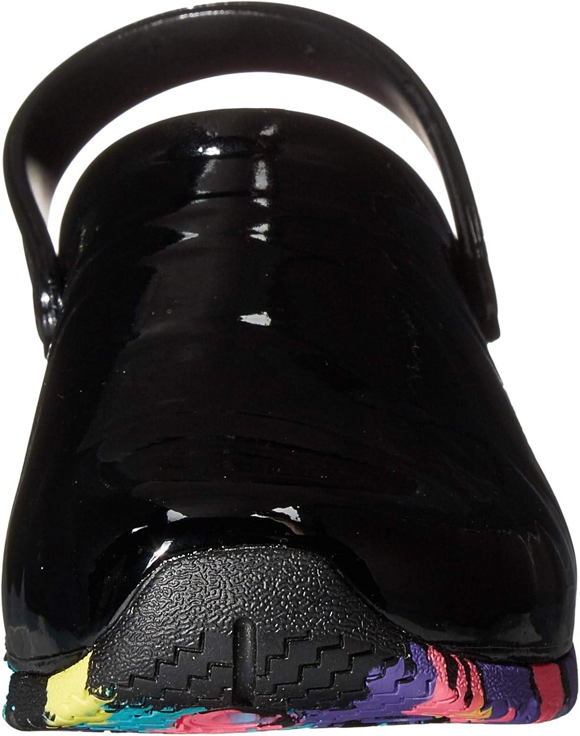 imageAnywear Zone Clogs  EVACushioned Non Slip Work Shoes  Breathable Nursing Shoes  Swivel Back Strap Clogs for Men ampamp WomenSole Focus Black Patent