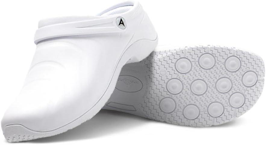 Anywear Zone Clogs – EVA-Cushioned Non Slip Work Shoes – Breathable Nursing Shoes – Swivel Back Strap Clogs for Men & Women(White)